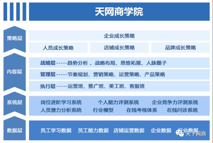 为此,詹海涛想了很多,组织内在成长的核心力量如何培养、组织梯队如何构建、老板的视野和布局、中层的策略和管理、基层团队的执行如何协调,都成为摆在天网商学院案上的课题。