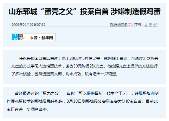 2000年,假鸡蛋传说第一次大范围流传,那时互联网还属新鲜事物,马云还在为阿里赚1块钱疲于奔命,淘宝压根就没有影儿。
