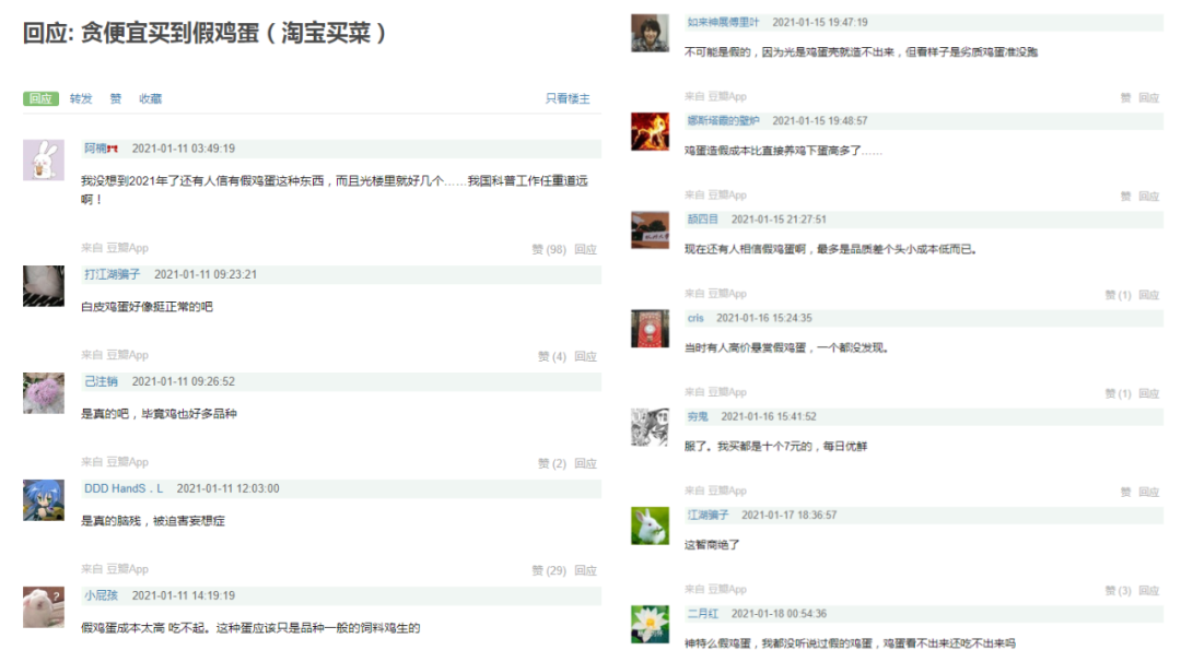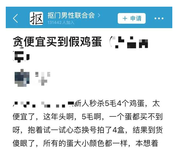 前段时间,豆瓣上有一个帖子,一位老司机反映在某电商平台买到假鸡蛋,很是气愤,发帖声讨。
